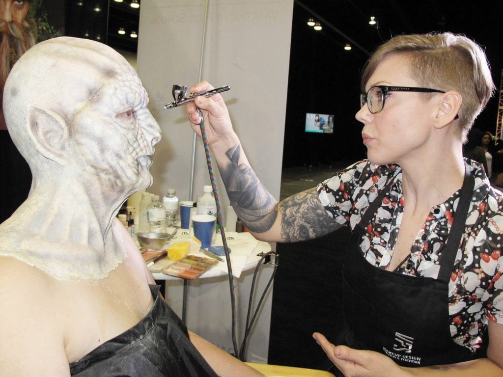 We’re excited to welcome new tutor Martina Sandelin to Gorton Studio!Martina is an accomplished all-rounder in the field of film prosthetics and makeup FX as well as an experienced teacher. She will be principal tutor on our next 7-week Makeup FX & Prosthetics Creation course that starts on September 7th.Born in Sweden, Martina and moved to Vancouver, Canada in 2013 to attend Vancouver Film School’s programme in makeup design and prosthetics for film and television. After graduating with honours she started her journey as a freelance artist in Canada working for Bill Terezakis at WCT and Toby Lindala at Lindala Schminken FX.She moved to the UK in 2016 and since then has worked on-set and in workshops for companies such as Millennium FX, Kristyan Mallett’s KMFX and as a model maker in Pierre Bohanna’s Costume FX department.With skills across the spectrum of prosthetic manufacturing techniques and prosthetic application, Martina is always busy with industry work, and also has a wealth of experience in teaching and training both students and industry newcomers beginning their careers.She says, “My ambition is to lead a new generation of students into the wonderful world of prosthetics through hard work and determination.”Her career highlights to date include movies such as Lemony Snicket’s: A Series of Unfortunate Events, Solo: A Star Wars Story, Star Wars: The Rise of Skywalker, Kung Fury 2 and Extinction, and TV shows like Bates Motel, Flash, Legends of Tomorrow, Supergirl, Arrow, X-Files and Doctor Who.The pic on the right shows Martina is working with Doctor Who’s Ice Warriors for our sister company Millennium FX.We can’t wait to get the next 7-week course started with Martina at the helm – look out for coverage of it on Facebook and Instagram soon!
