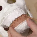 Sculpting realistic teeth in Chavant clay and reproducing them in plaster, enabling them to be refined and made to mesh together more closely.